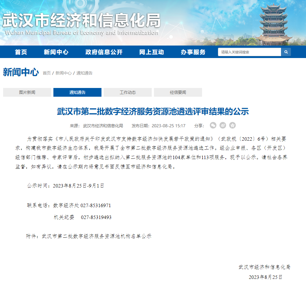 湖北中潮教育科技集团有限公司成功入选“武汉市数字经济服务资源池”。