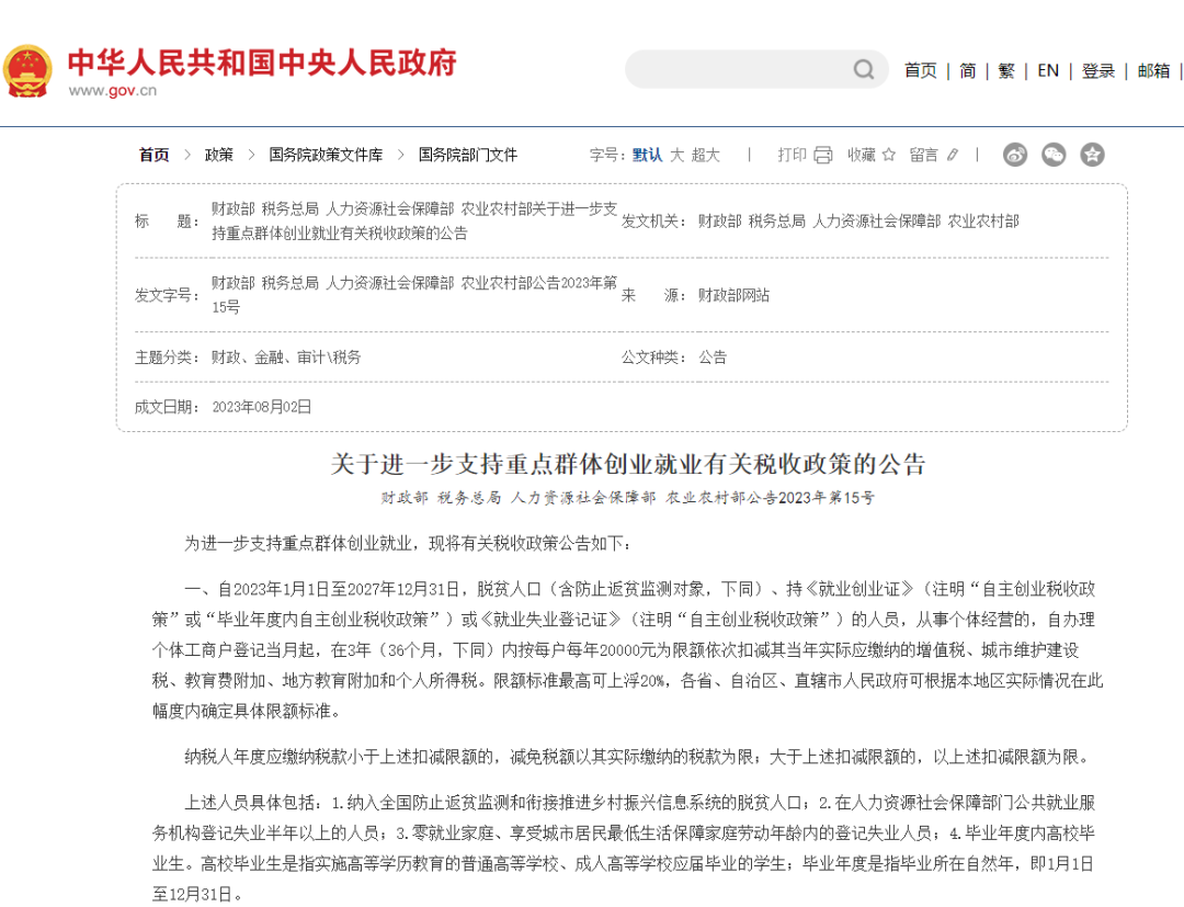 (2)企业招用一位建档立卡贫困人员可享受最高36个月的税收优惠政策期限;